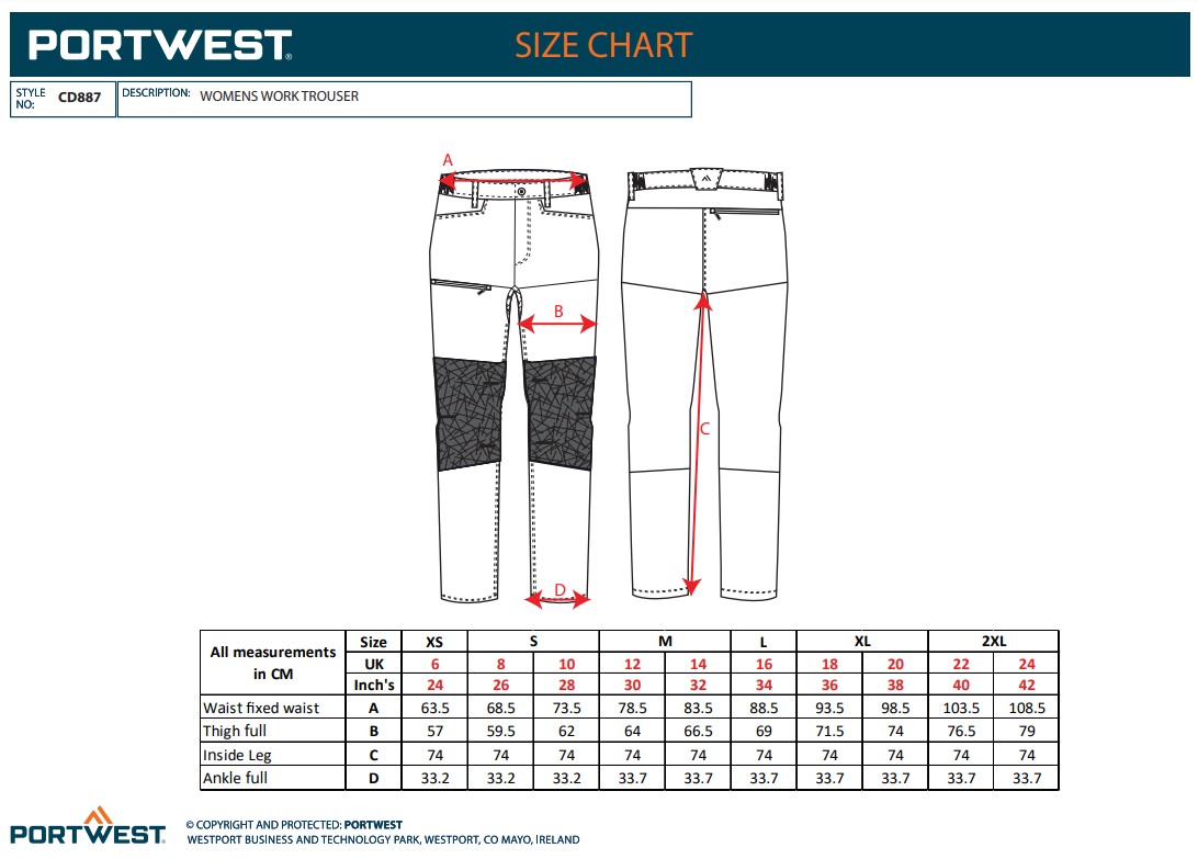 Portwest CD887 WX2 Eco Women's Stretch Work Trousers CD887