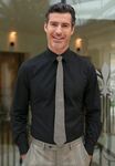 57% Polyester, 39% Cotton, 4% Elastane. Slim fit men's shirt in a superb stretch fabric, Single 2 button cuff. Twin rear darts for a defined silhouette. Easy to iron.